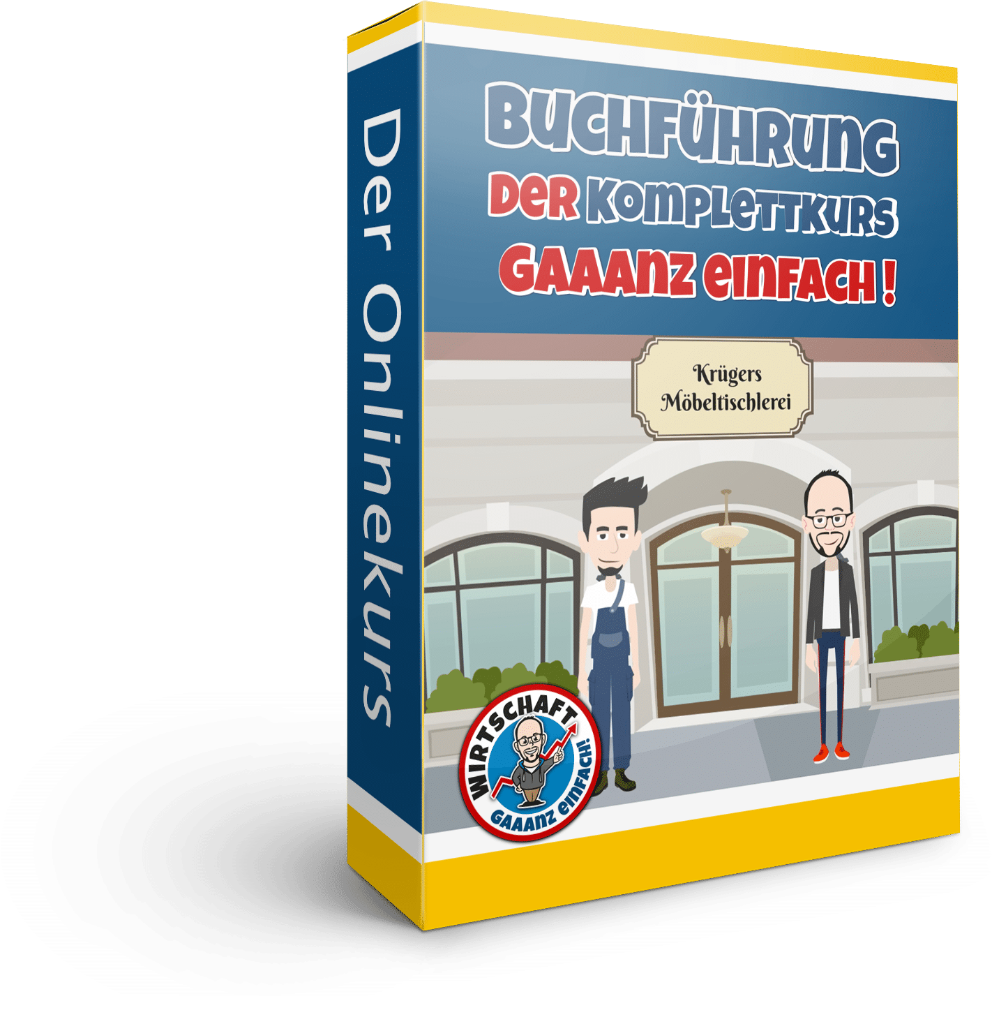 In meinem Onlinekurs lernst du in nur 10 Stunden die Buchführung anhand einer kleinen Zeichentrick-Geschichte. Da gibt es Martin, der hat die Schreinerei seines Opas geerbt. Um die weiterführen zu können braucht er Buchführung. Da er davon keine Ahnung hat, fragt er seinen Schulfreund Thomas, der mittlerweile eine Ausbildung beim Steuerberater gemacht hat, ob der ihm helfen könne. Dieser erklärt ihm dann die Buchführung Schritt für Schritt. So lernst du zusammen mit Martin die Buchführung.